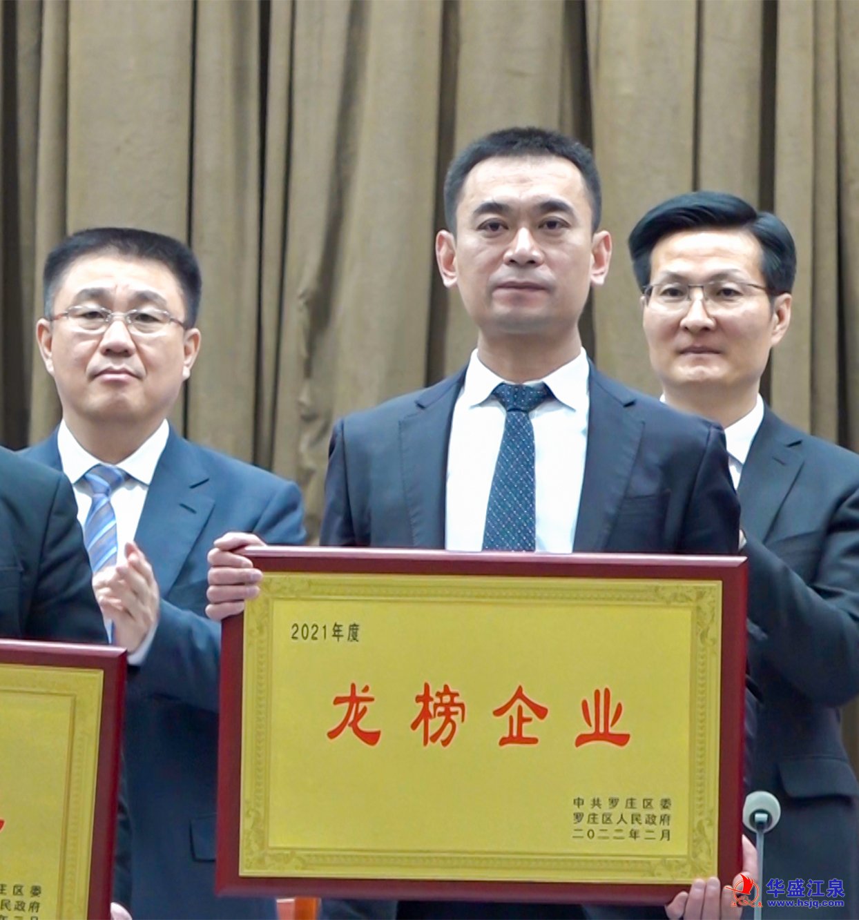 2月10日,羅莊區“六比六賽”促發展暨轉作風優環境活動動員會議召開,動員全區上下牢固樹立“項目為王、企業至上”的理念,一切圍繞企業轉,一切盯著項目干,努力跑出項目建設“加速度”,打造營商環境“金招牌”,展現作風建設“新氣象”,推動全區經濟社會高質量發展。為表揚先進、樹立典型,羅莊區委、區政府對2021年度具有特殊貢獻的先進企業進行了表彰。在此次受表彰的全區15家“2021年度龍榜企業”中,華盛江泉集團榮登榜首。沈泉莊黨委書記、華盛江泉集團常務副總經理、財務總監張毅參加動員會議并上臺領獎。