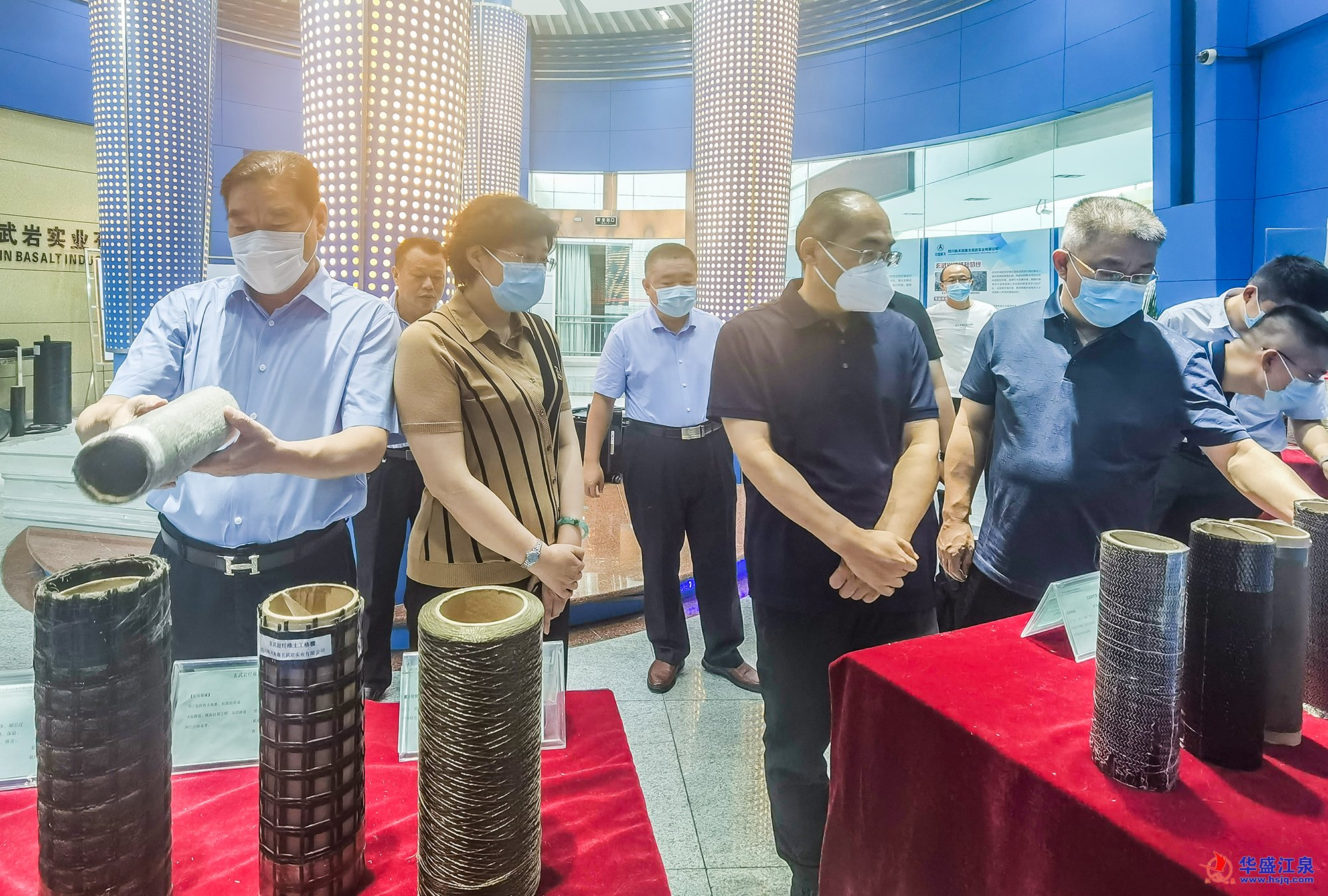 畢黎明一行先后參觀考察了航天拓鑫民品展室、達州市玄武巖纖維產業館和四川炬原玄武巖纖維科技有限公司的生產全過程,詳細了解玄武巖礦粉(樣品)、玄武巖纖維拉絲、玄武巖纖維包裝、玄武巖纖維織布、玄武巖短切纖維、玄武巖纖維復合材料、玄武巖纖維制品等。