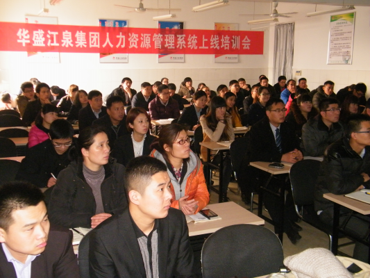 2014年2月20 上午9:00,華盛江泉集團人力資源管理系統上線培訓會在華盛實驗學校哈佛樓四樓隆重舉行,參加此次培訓會的有集團信息中心主任田樹剛,人社中心主任楊琳琳、人社中心副主任周瑩瑩,用友HR項目組成員,集團HR項目組成員、各子公司人力資源部負責人以及各單位EHR專員共70余人。集團項目組代表申路平主持了本次培訓。